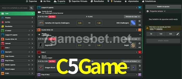 O C5Game oferece uma grande seleção de opções de apostas em e-sports com probabilidades competitivas
